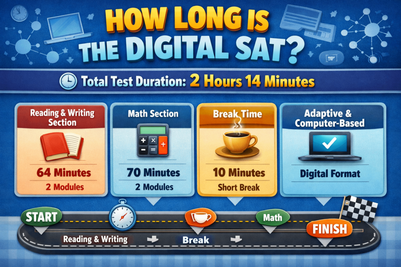 Everything you need to know about digital SAT test duration, section timing, and breaks to maximize your preparation and performance on test day.