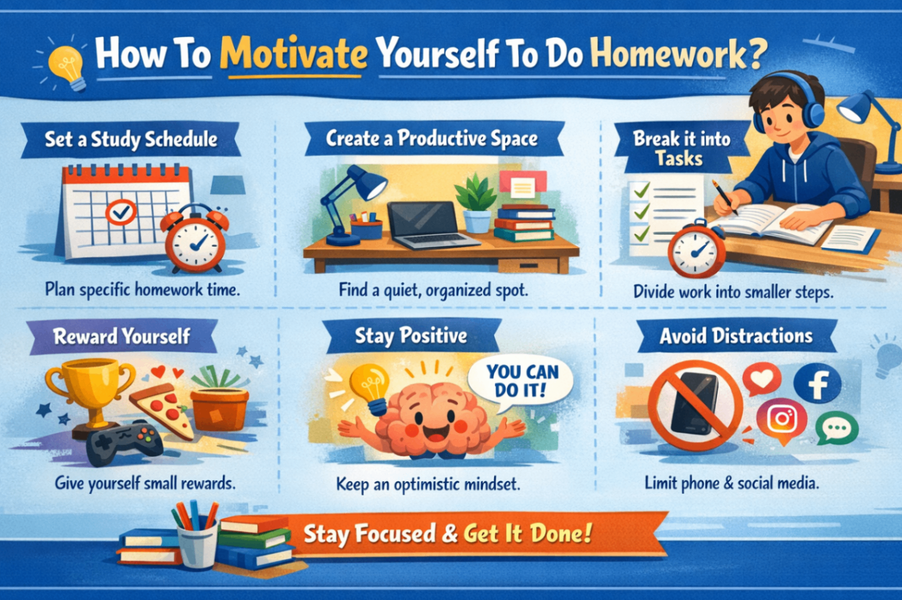 Learn how to motivate yourself to do your homework with psychology-based strategies, time management techniques, and practical tips that build sustainable motivation.